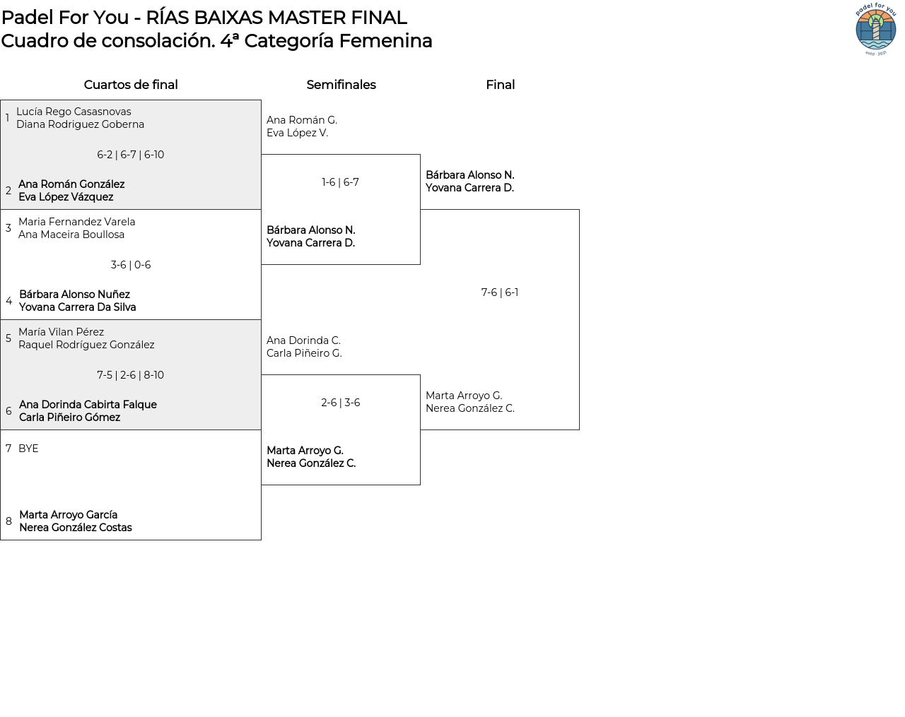 Cuadro de consolación 4ª Categoría Femenina