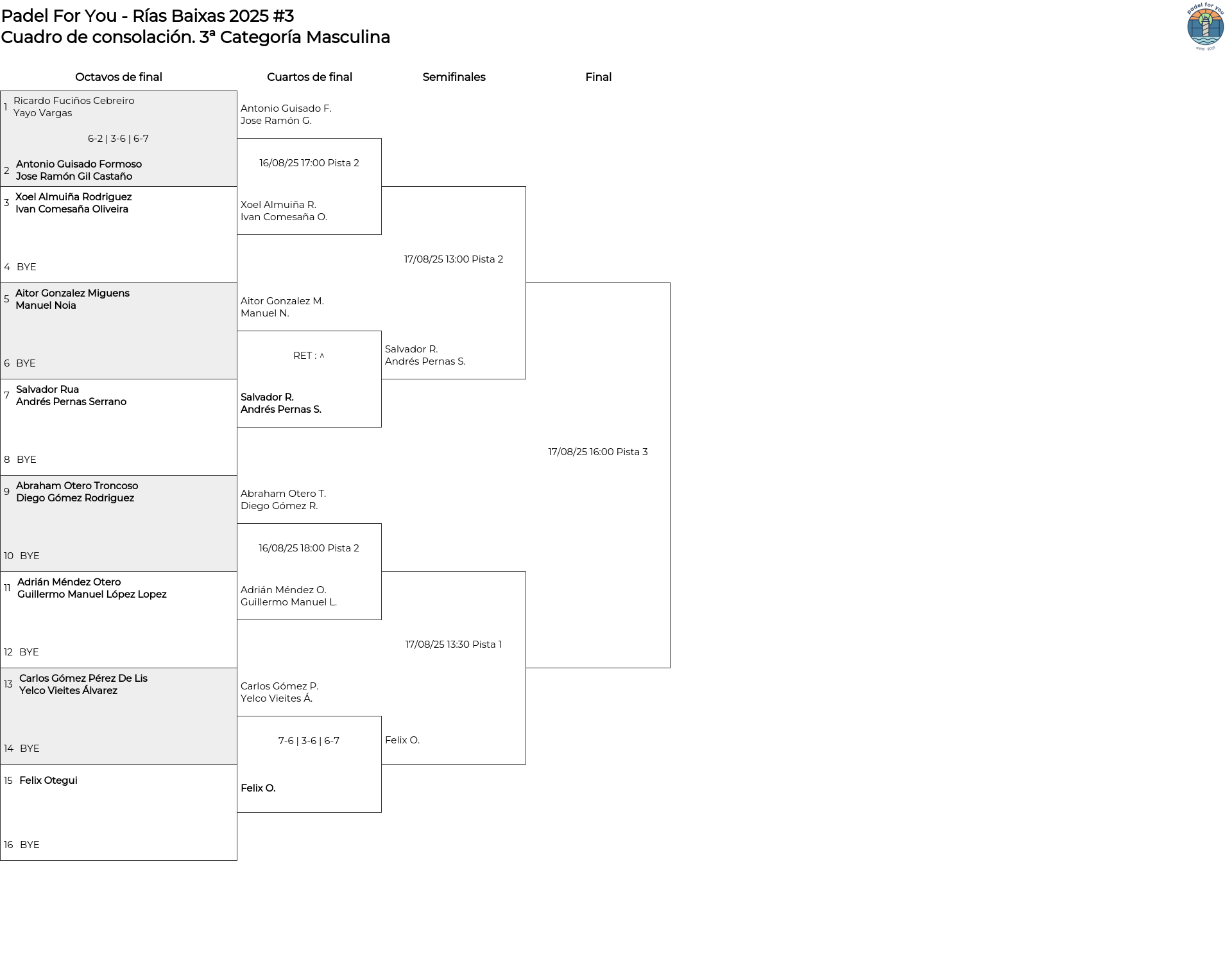 Cuadro de consolación 3ª Categoría Masculina